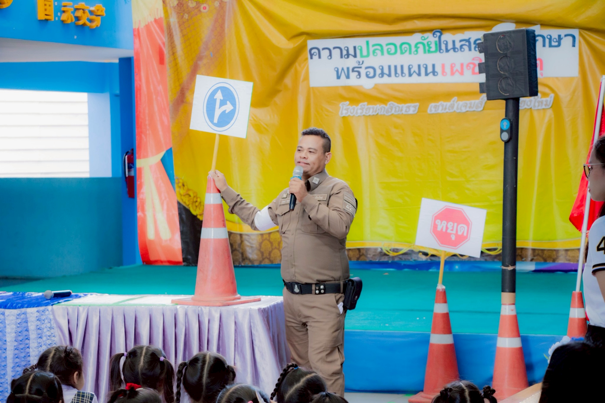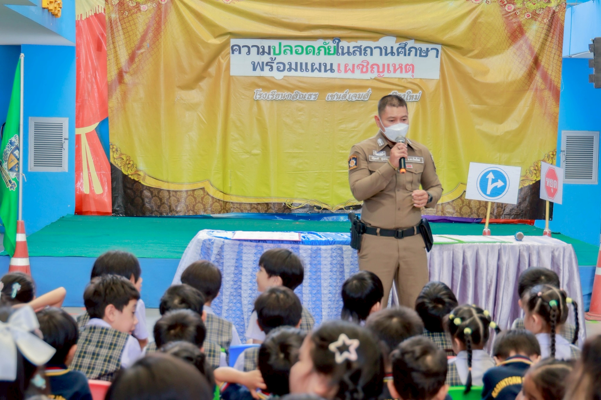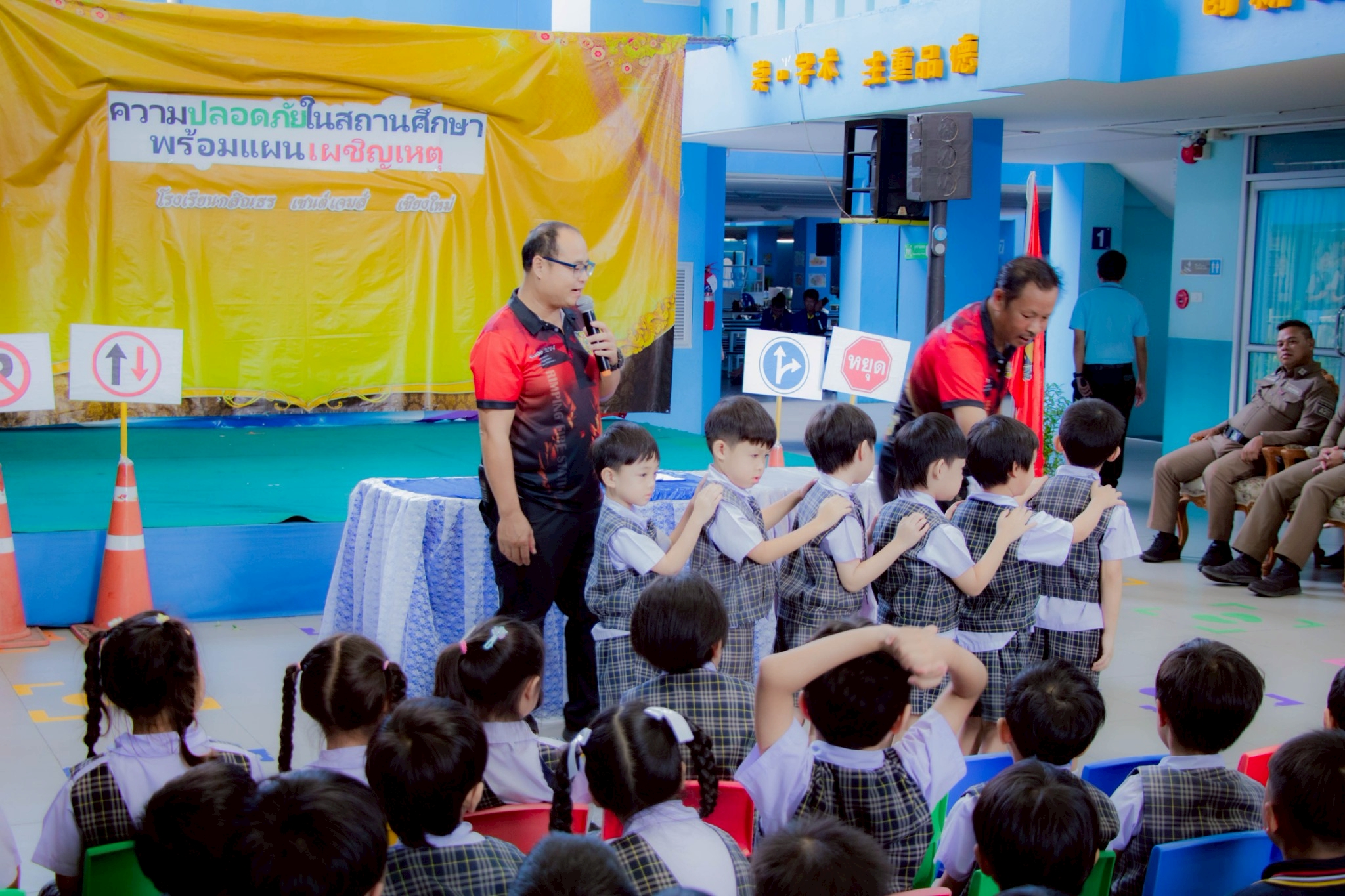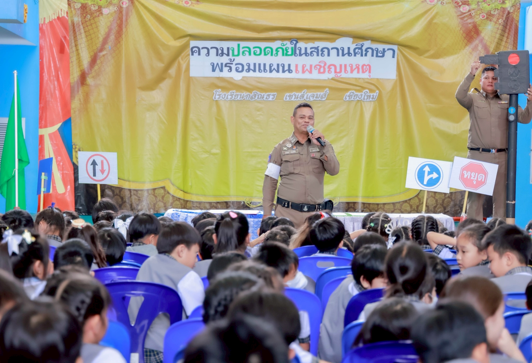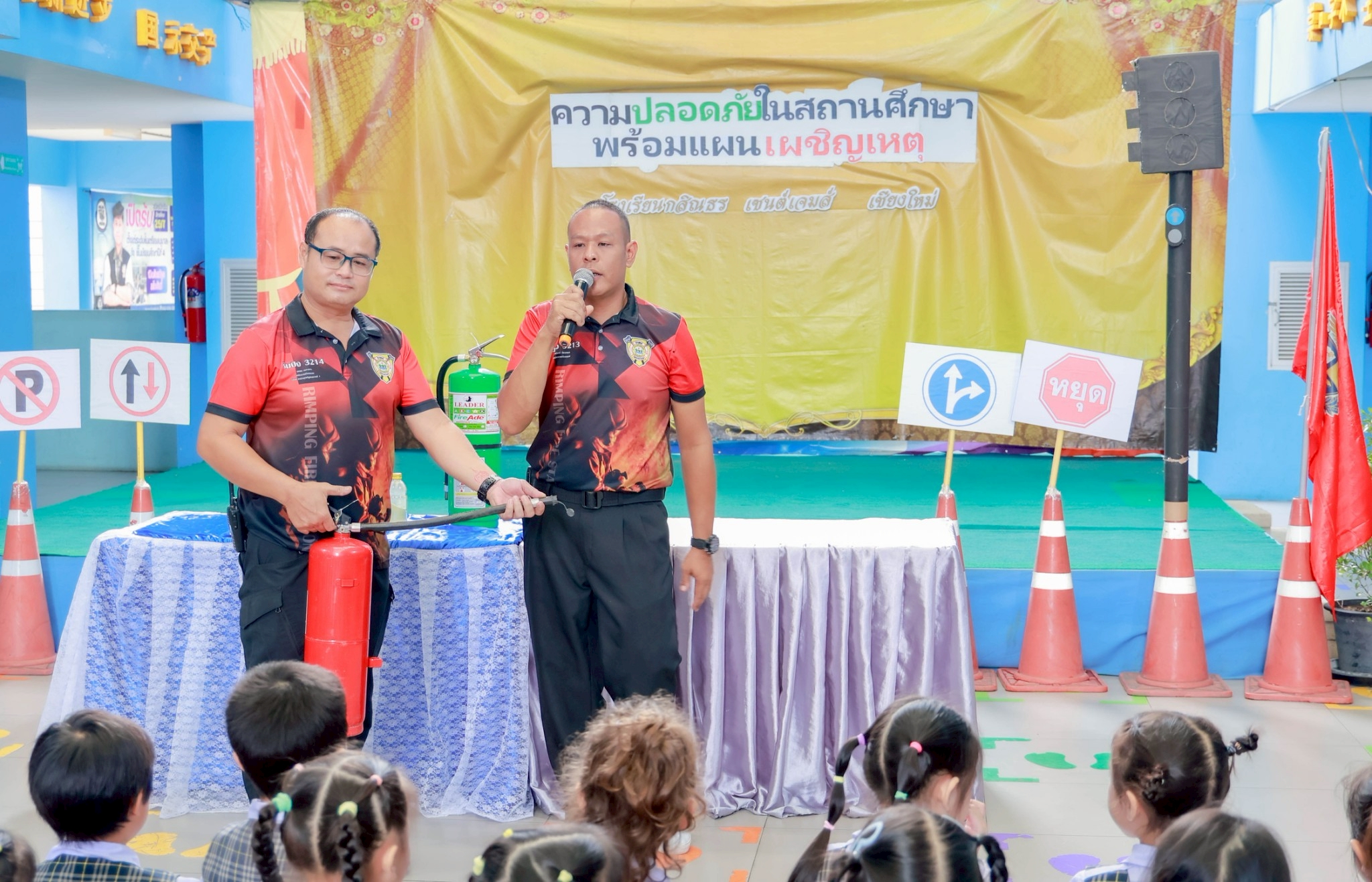 Kasintorn Saint James Chiang Mai School, in collaboration with the Pa Daet Subdistrict Municipality, the Chiang Mai Provincial Police Traffic Division, and the Honda Safe Driving Center Chiang Mai, has organized an emergency response drill. The objective is to educate students, teachers, and staff about the causes of accidents, equip them with basic prevention techniques using various tools and equipment, and familiarize them with safe evacuation routes from buildings during an emergency.🏃♀️
