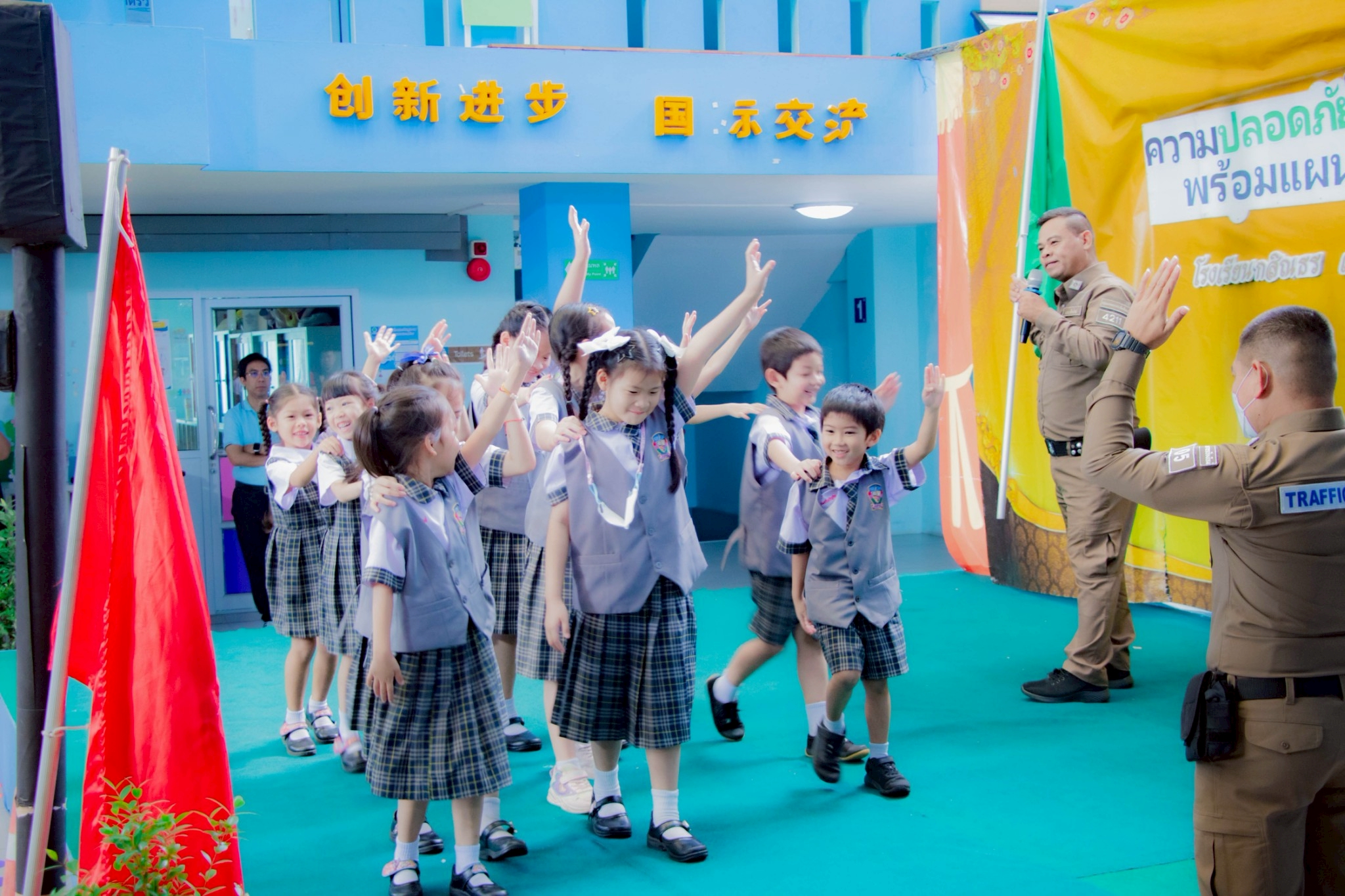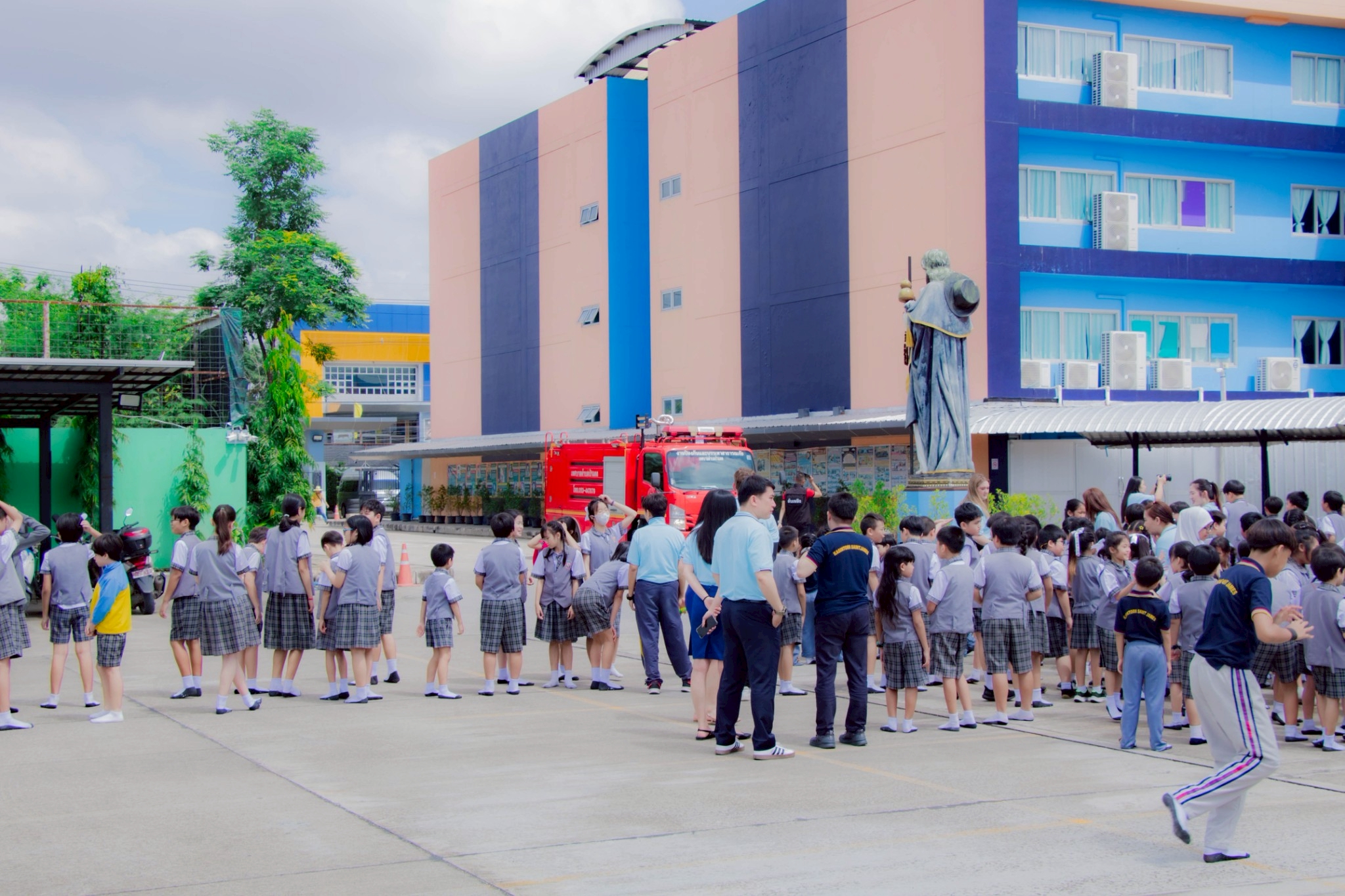 泰国清迈卡辛通圣詹姆斯学校举办了一场防灾演习🚨,该活动获得了Pa Daet 街道办事处🏘️、清迈府警察局交通科🚓以及清迈本田安全驾驶培训中心🏍️的大力支持。 此次演习旨在帮助学校的学生、教师和员工了解灾害发生的原因🧯、掌握基本的防灾工具和设备的使用方法,以及熟悉灾害发生时,安全撤离建筑物的路线🏃♀️。