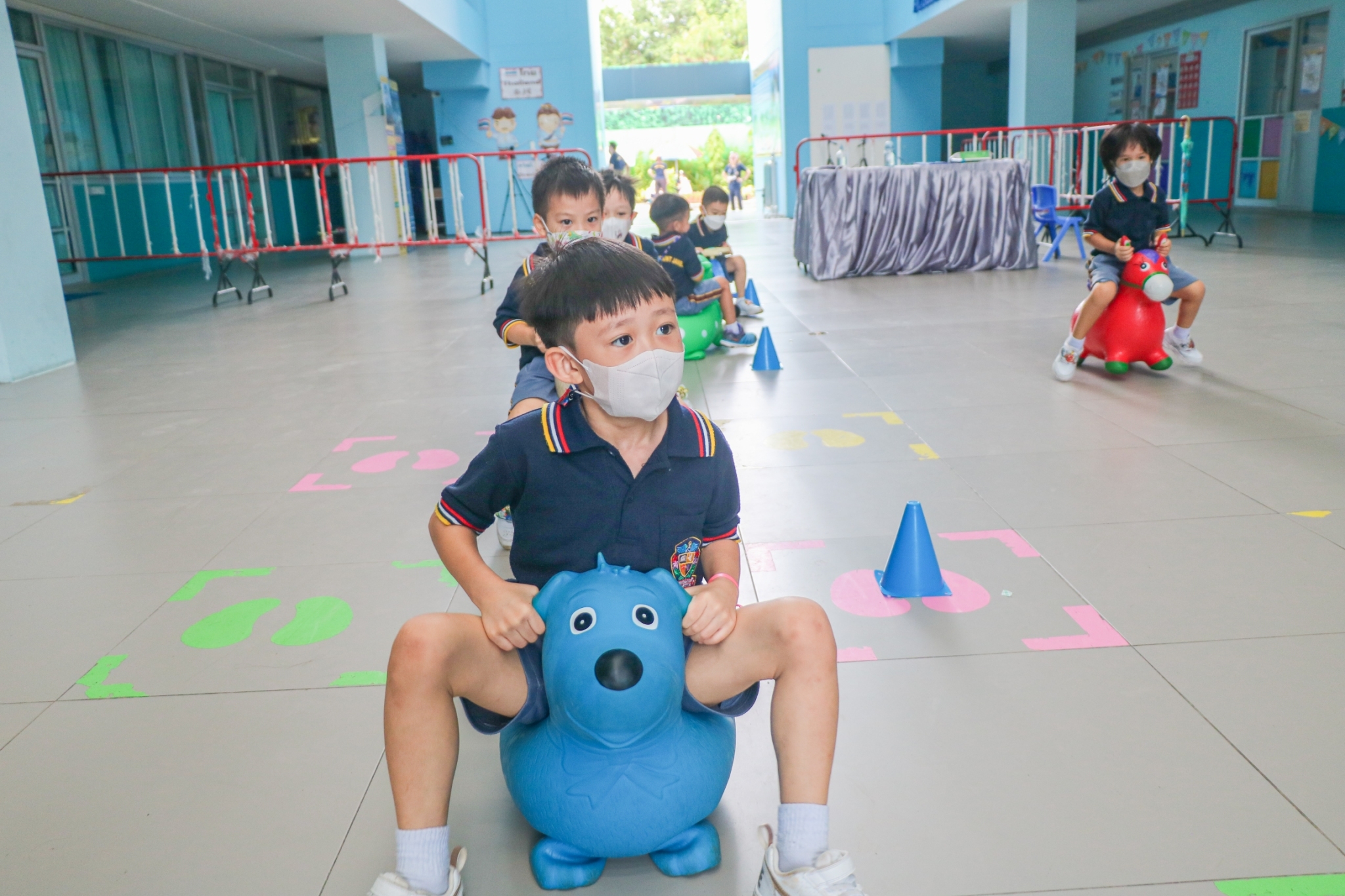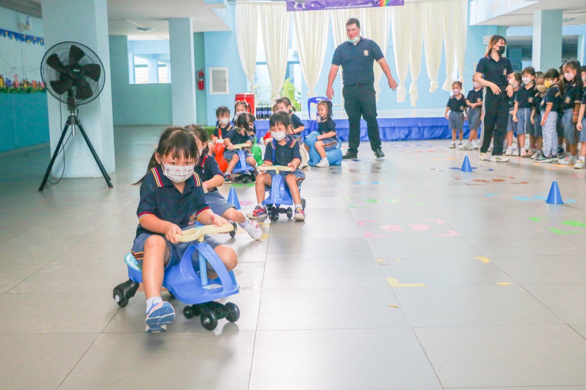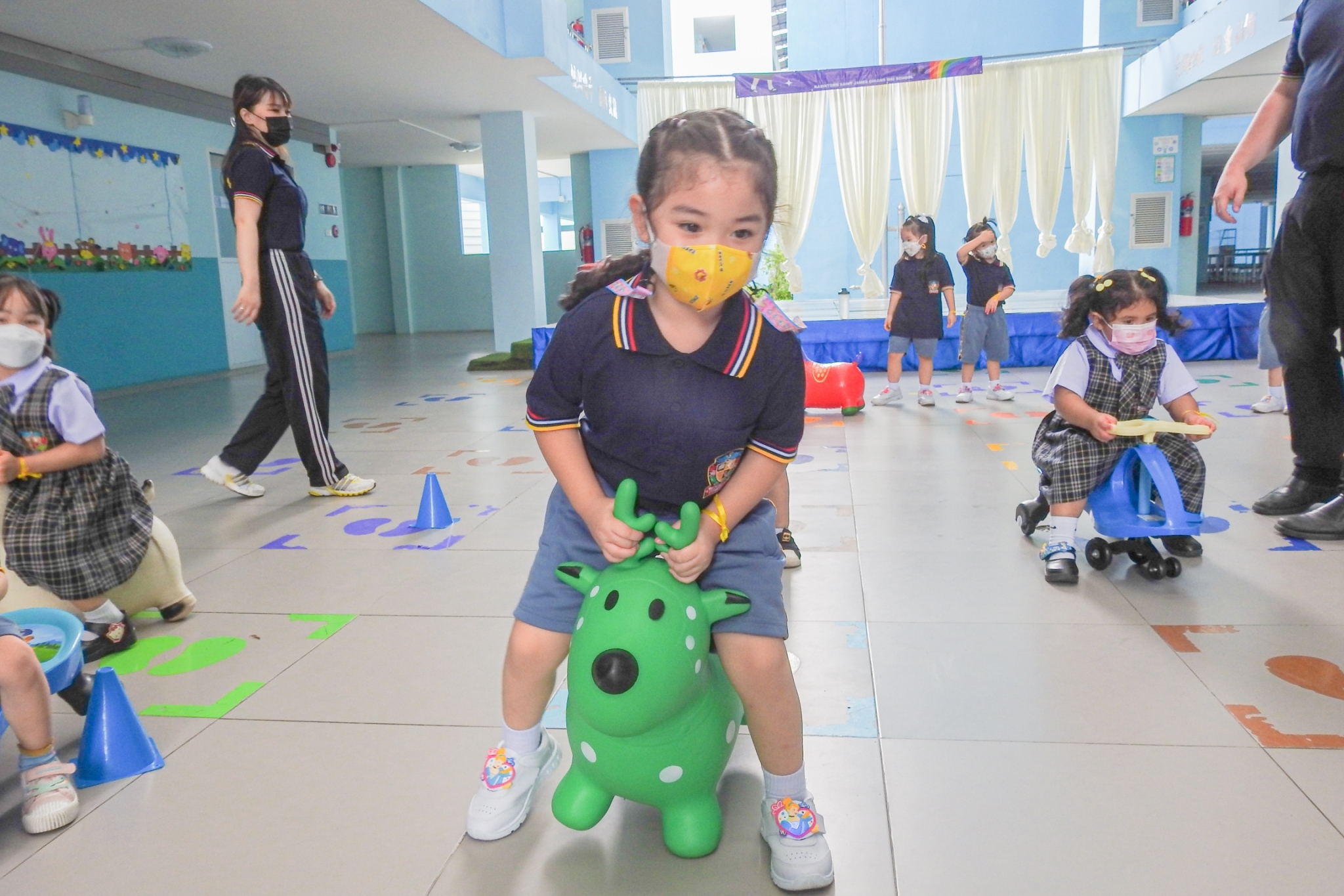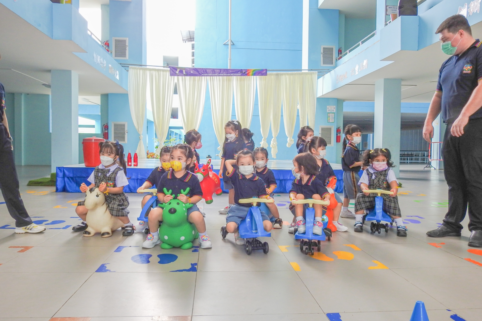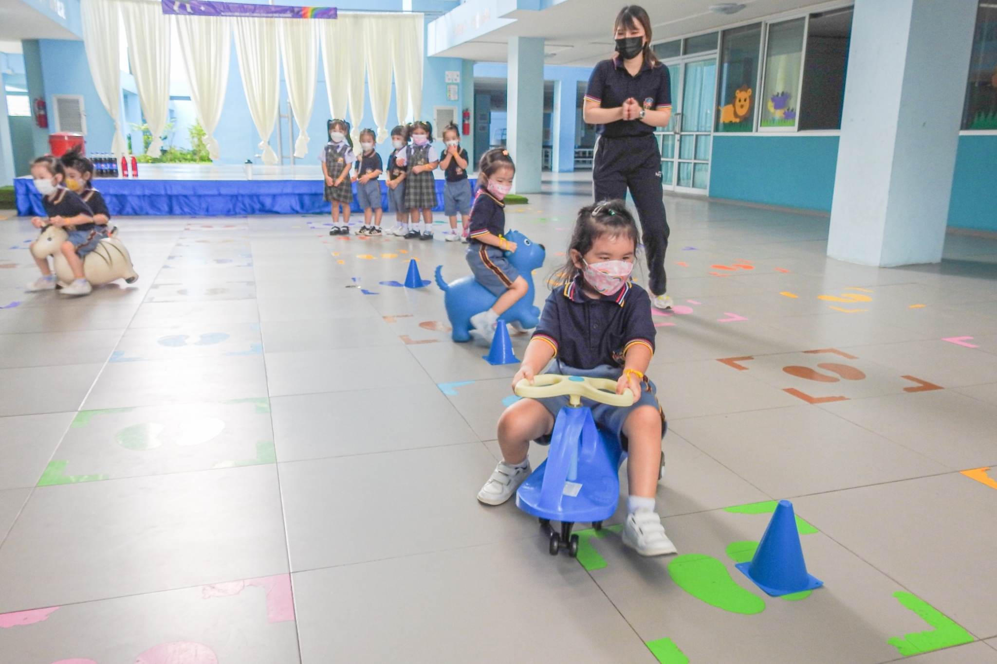 Stepping with hand and foot Hand and foot activity encourage children to exercise, improve arm muscles and improve their posture, develop balance, learn left-to-right direction, and move back. This activity will also help students solve the problem by themselves in various situation.