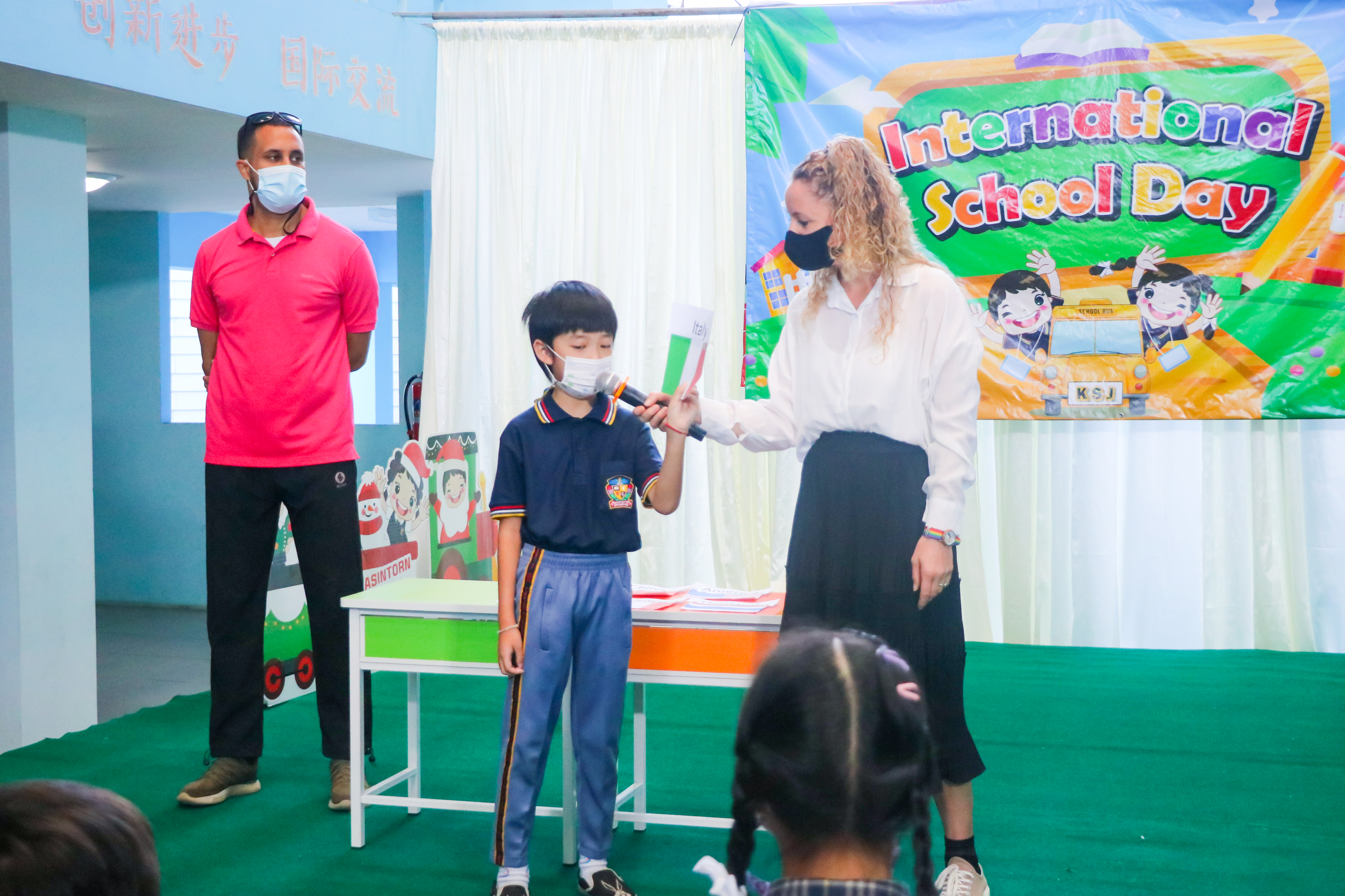国际日活动,外教组织了一场以“What would you like to be”为主题的活动,学生们上台,用英语发言和回答问题。在公众面前表现出自信!
