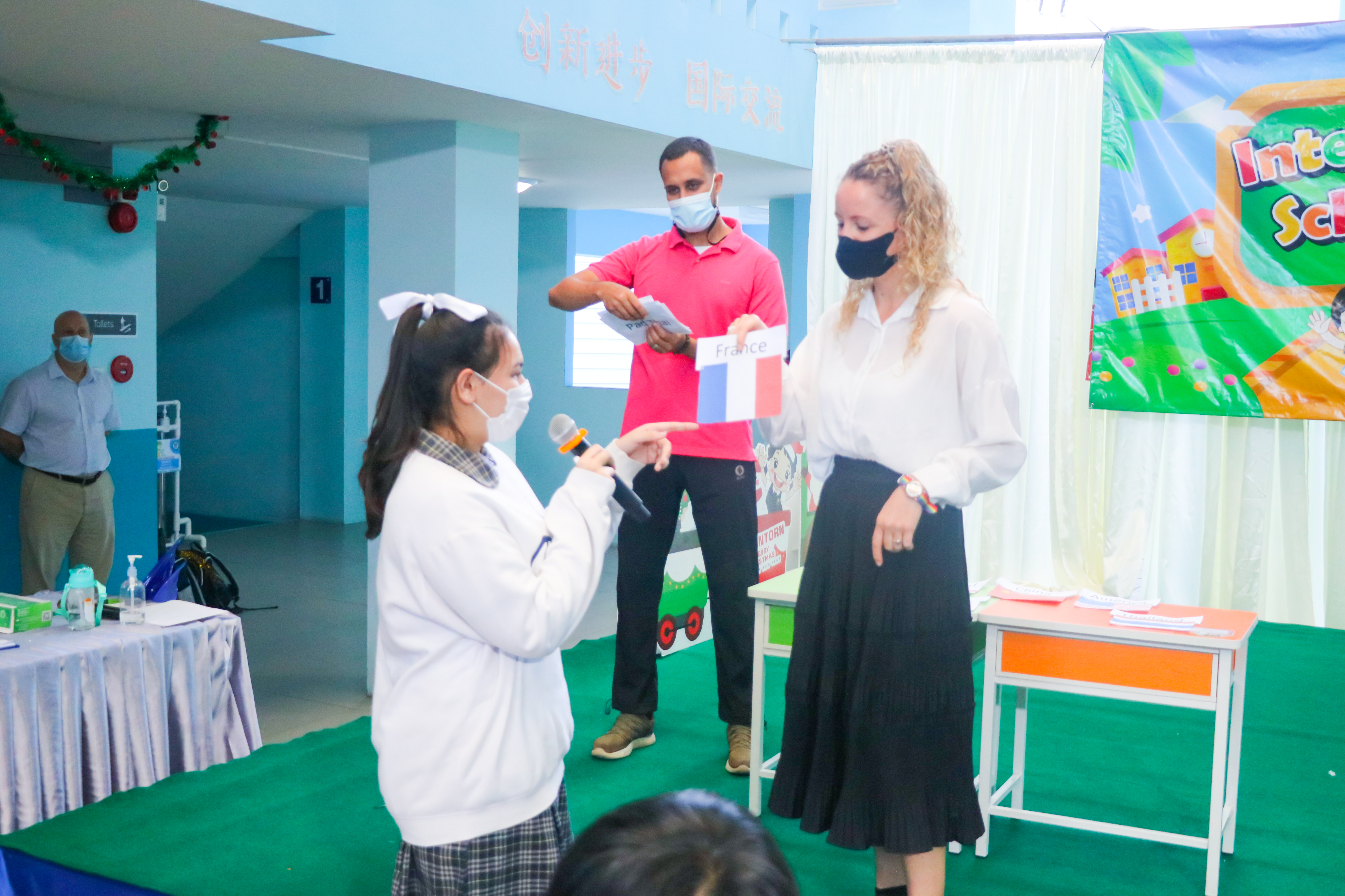 For this week's International Day, foreign teachers organized an activity on the topic " What would you like to be" where students came out to speak and answer questions in English on the stage. This is done to practice and improve speaking with confidence in front of the public.