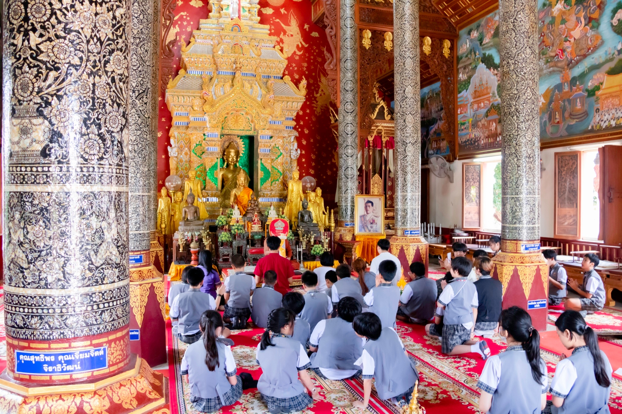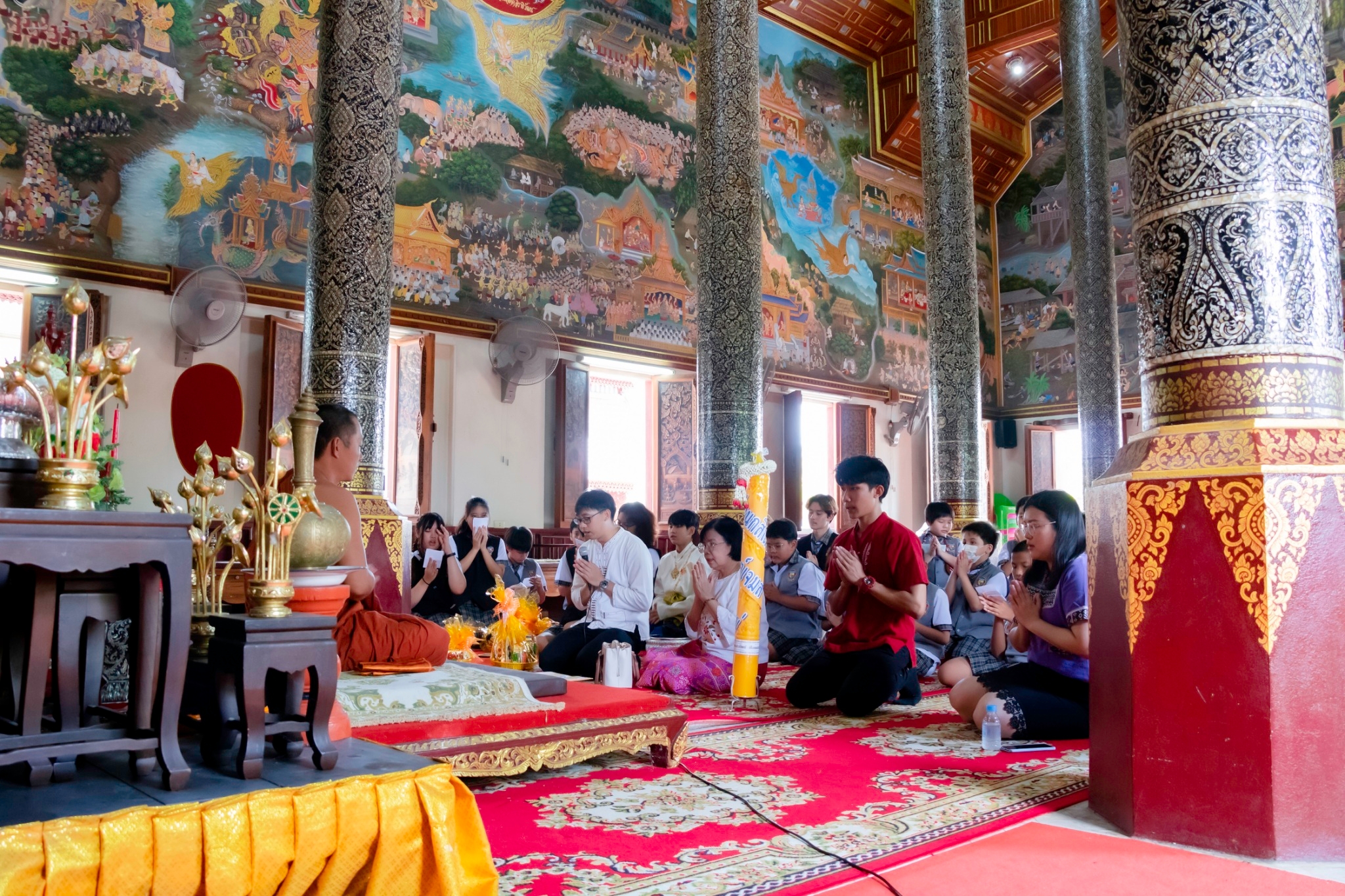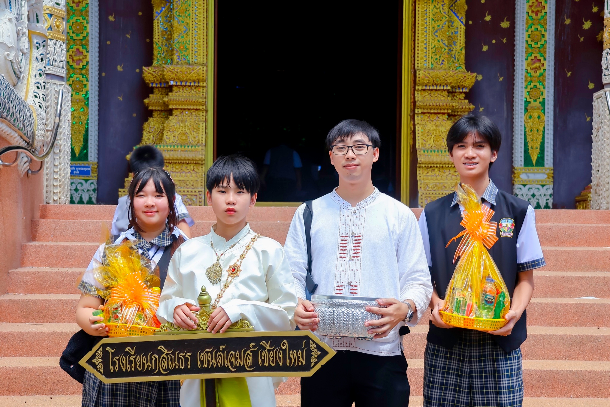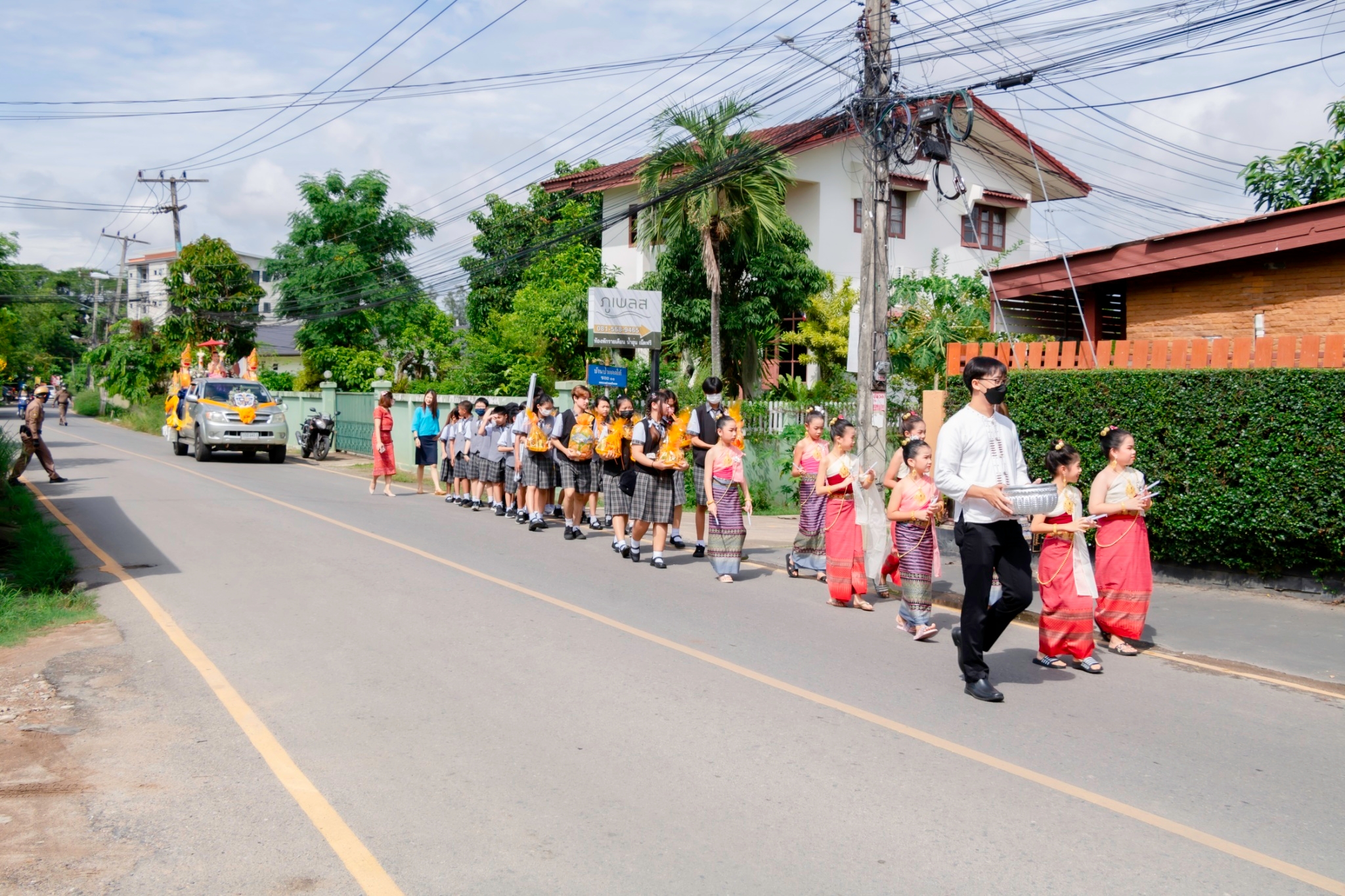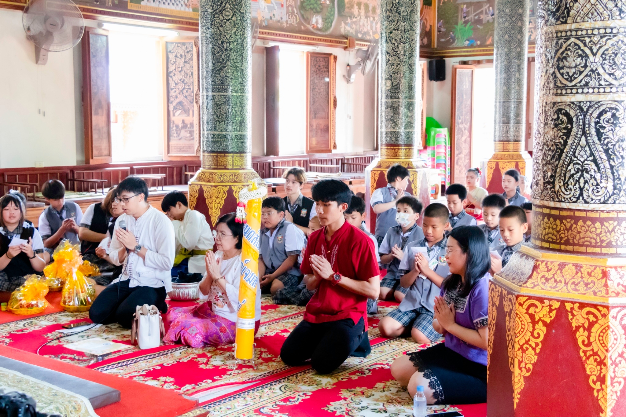 Ceremony of Candle Procession and Alms Offering on the Occasion of Buddhist Lent in the Year 2566. Wednesday, 26th July 2566. Kasintorn Saint James Chiang Mai School, along with the school administrators, teachers, students, and parents, participated in the ceremony of candle procession and alms offering on the occasion of Buddhist Lent Day. This event aimed to preserve the beautiful traditions of Thailand and promote spiritual blessings at Wat Pa Daet and Wat Ko Klang.