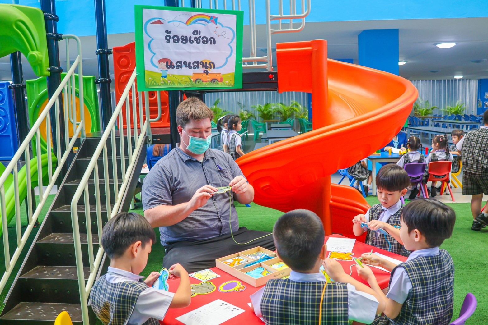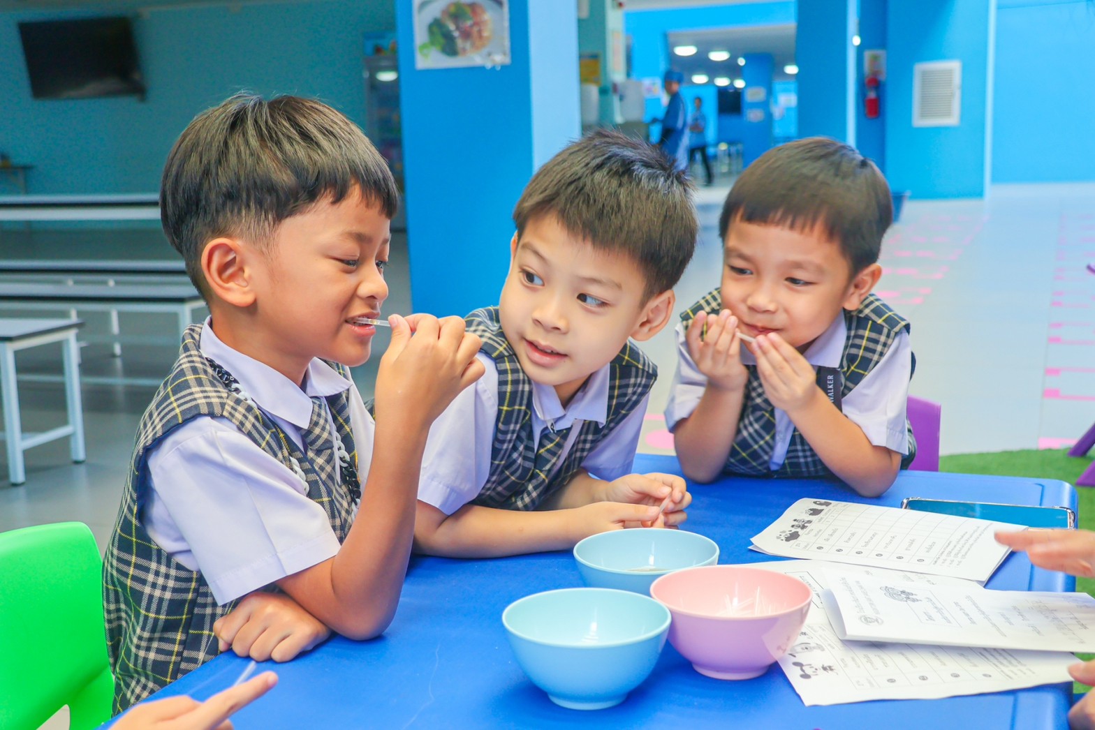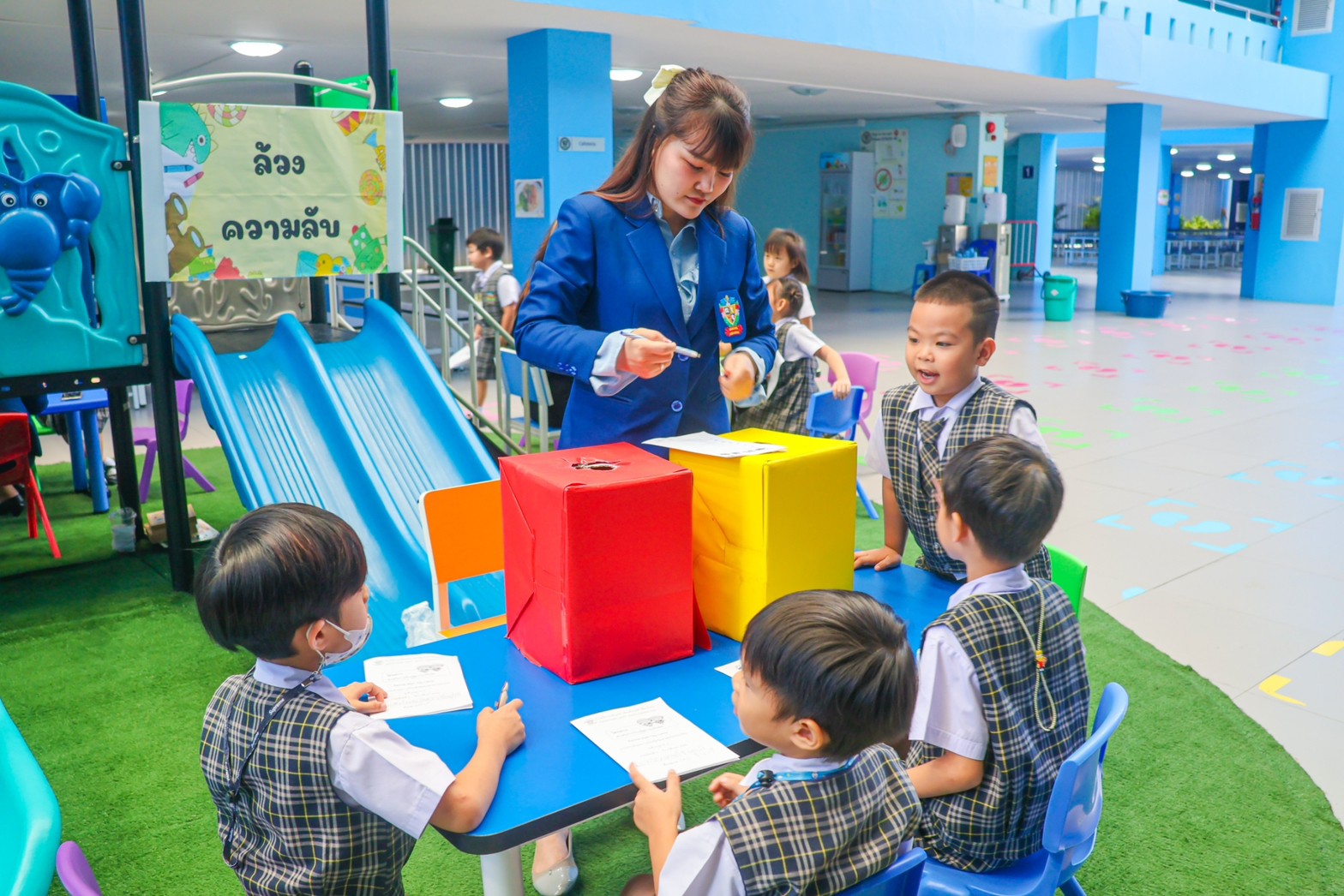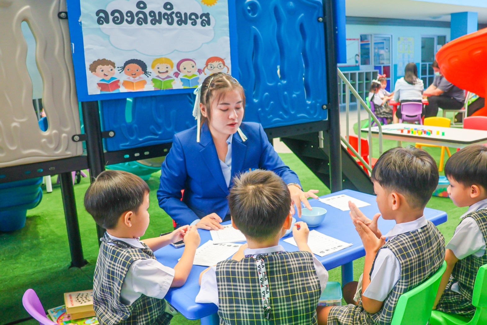 Kasintorn Saint James School Chiang Mai School conducts developmental assessments for kindergarten 3 (KG.3) children using a structured learning approach. All children participate in activities according to the designated schedule. Teachers assigned to each group individually assess the children using tools, media, and equipment suitable for their developmental stage and natural learning tendencies. The assessment of preschool development focuses on real-life evaluation, covering aspects such as overall development, knowledge, abilities, and children's efforts, with the aim of recording and collecting data on each child.