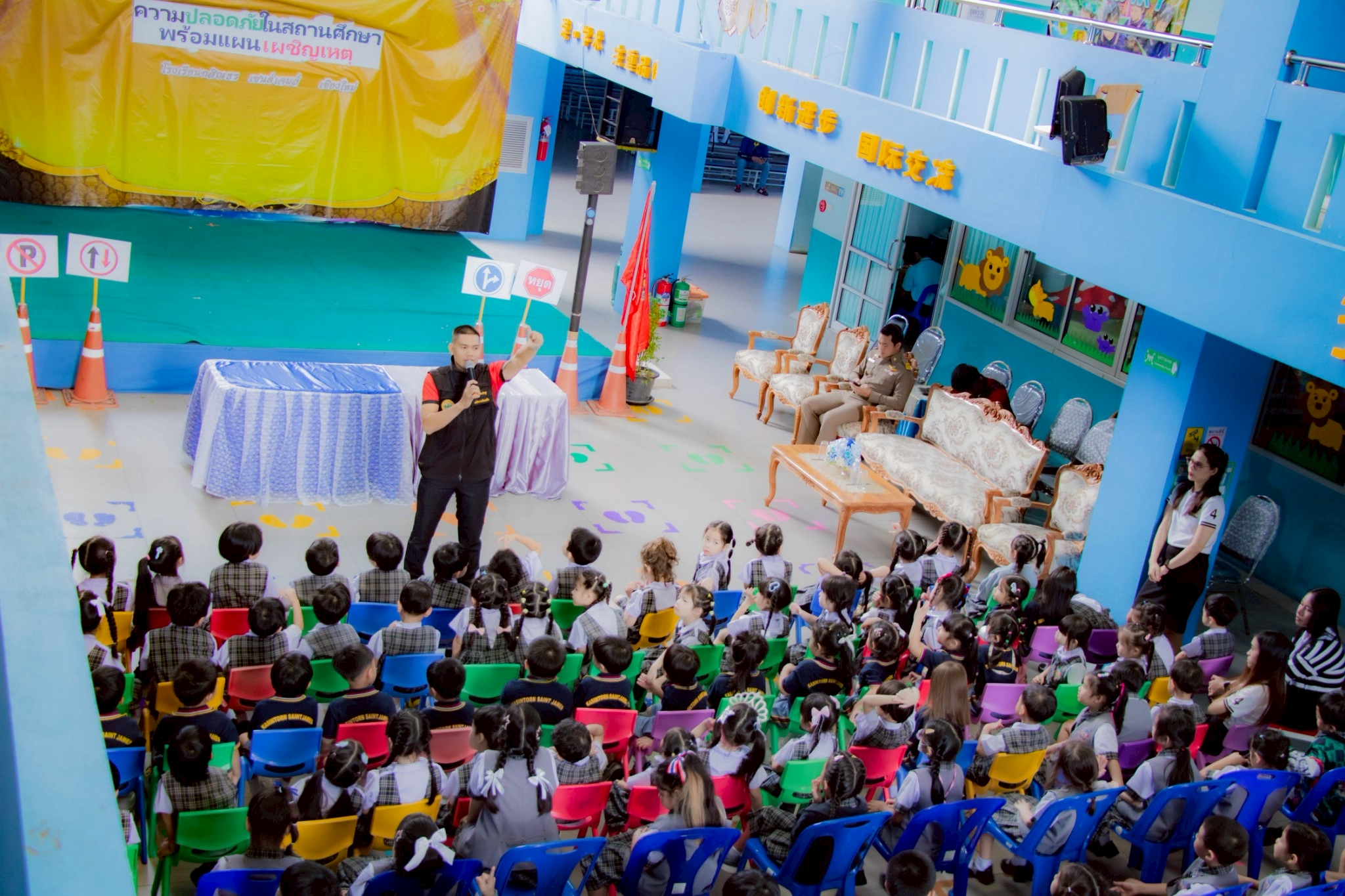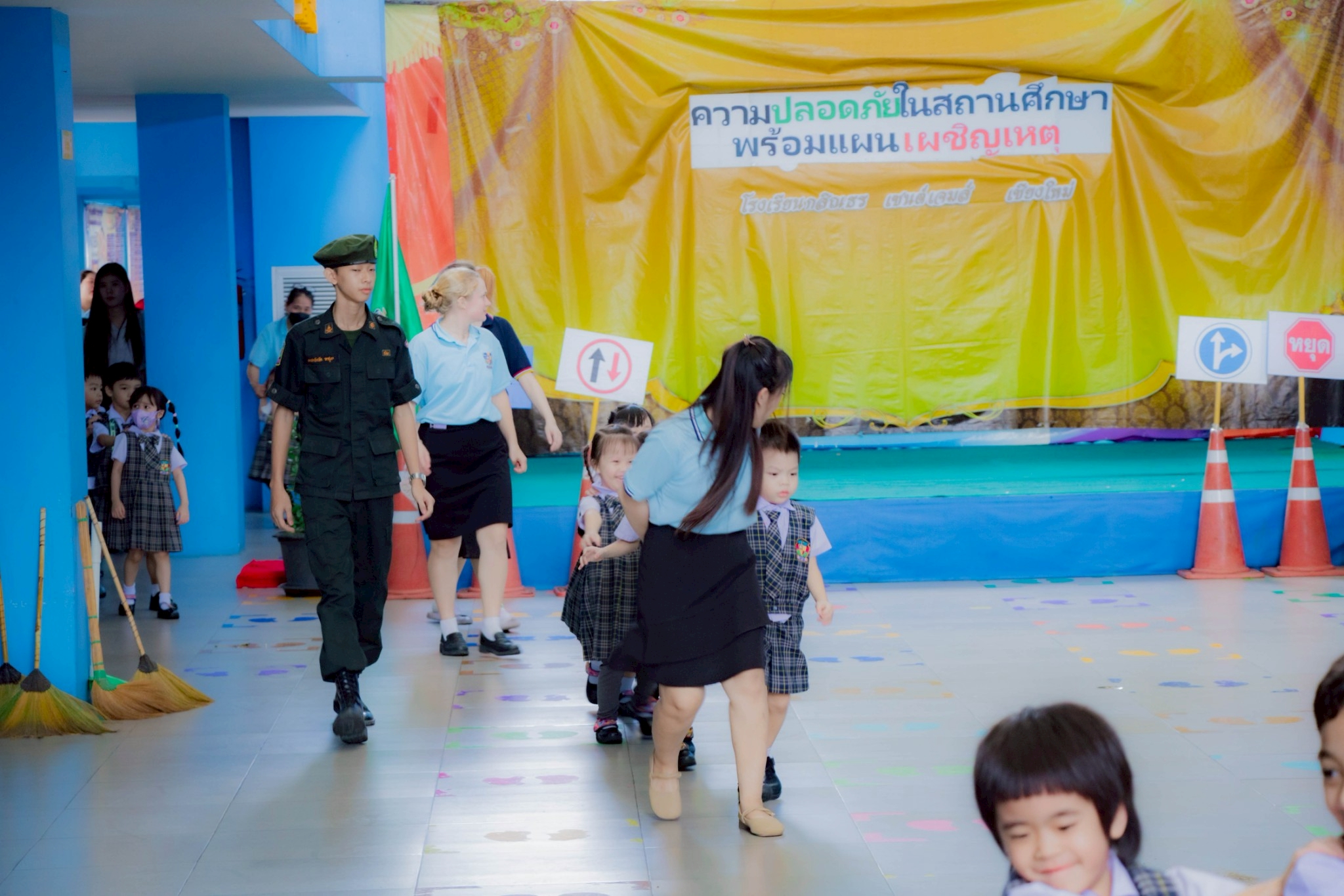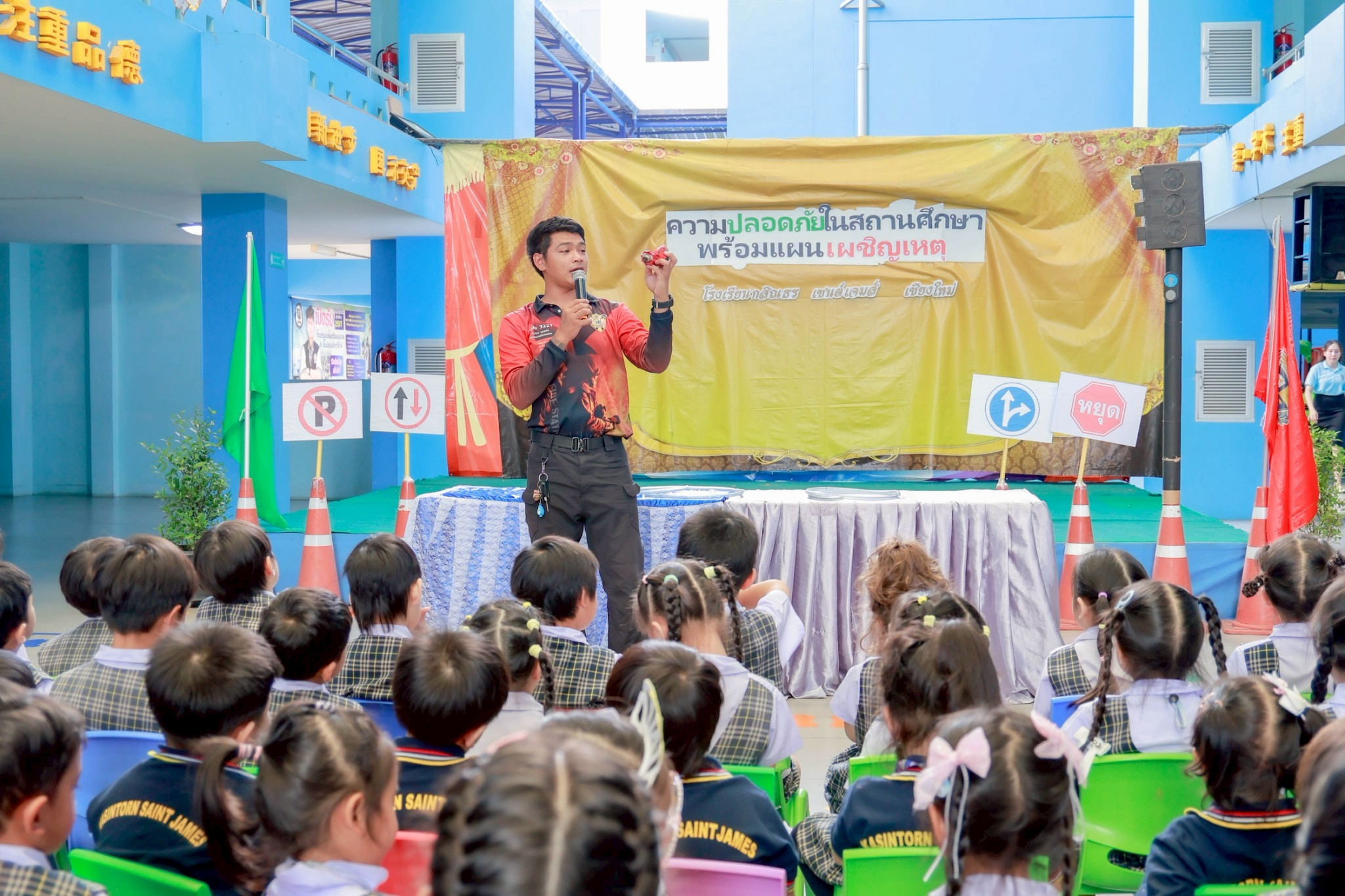 Kasintorn Saint James Chiang Mai School, in collaboration with the Pa Daet Subdistrict Municipality, the Chiang Mai Provincial Police Traffic Division, and the Honda Safe Driving Center Chiang Mai, has organized an emergency response drill. The objective is to educate students, teachers, and staff about the causes of accidents, equip them with basic prevention techniques using various tools and equipment, and familiarize them with safe evacuation routes from buildings during an emergency.🏃♀️