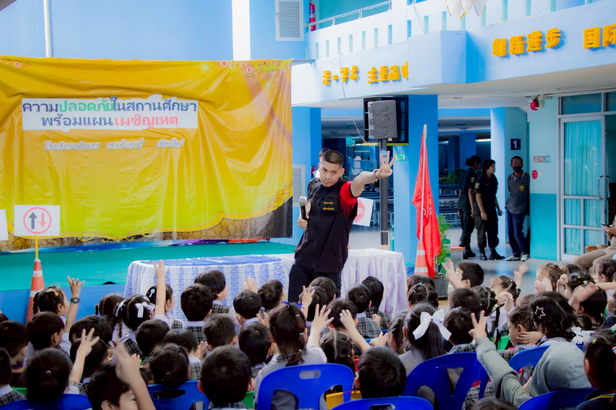 泰国清迈卡辛通圣詹姆斯学校举办了一场防灾演习🚨,该活动获得了Pa Daet 街道办事处🏘️、清迈府警察局交通科🚓以及清迈本田安全驾驶培训中心🏍️的大力支持。 此次演习旨在帮助学校的学生、教师和员工了解灾害发生的原因🧯、掌握基本的防灾工具和设备的使用方法,以及熟悉灾害发生时,安全撤离建筑物的路线🏃♀️。
